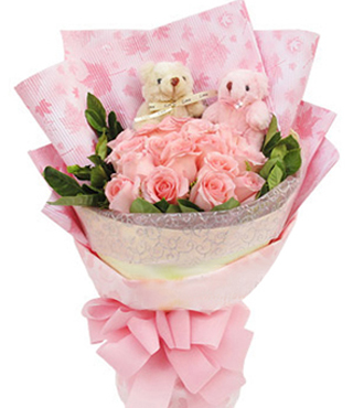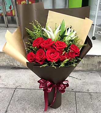 生意興旺 會員價:¥348 7朵百合(粉色+白色),50只鮮花(戴安娜玫瑰+白玫瑰+香檳玫瑰+紅色康乃馨)