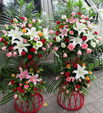 開業大吉 會員價:¥284 白+粉百合6朵,30支紅色扶郎花,10支粉色扶郎花,16支黃色扶郎花,黃鶯,散尾葵等豐滿搭配。 -